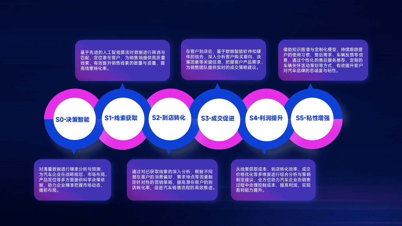 通过拓宽潜在客户来源、、、、优化线索分配并提高到店转化率,,,以增强销售效率。。同时,,,利用线索数据不断优化分析模型,,,有效提升转化率,,扩大营销影响力。。